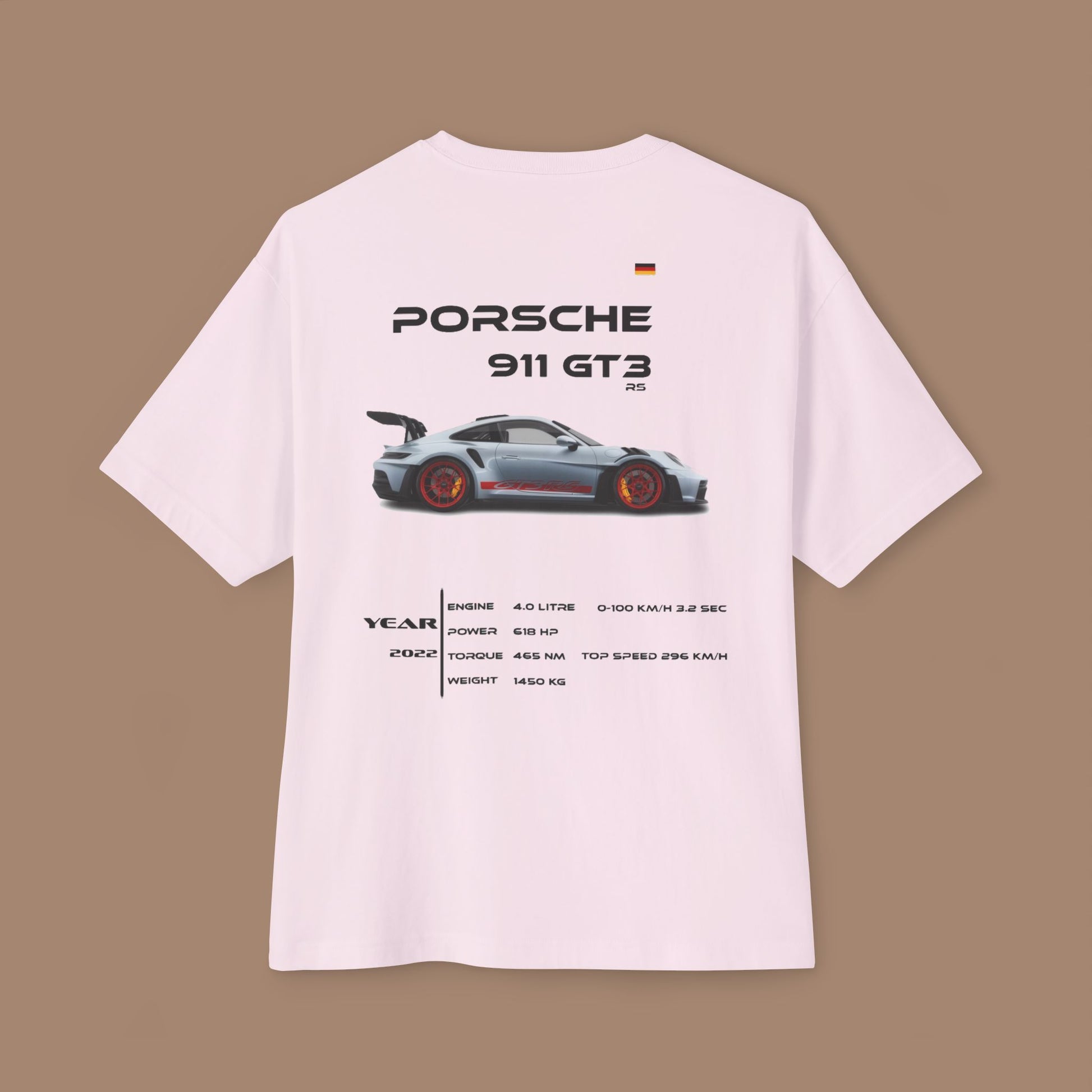 This Porsche GT3 RS T-shirt exudes a sleek and sporty vibe, perfect for automotive enthusiasts and race car fans. It is a great addition to a casual wardrobe, suitable for everyday wear or to show off at car meets and races. Ideal for those who appreciate luxury sports cars and want to make a statement with their fashion choices. Perfect for birthdays, Father's Day, and car-related events.